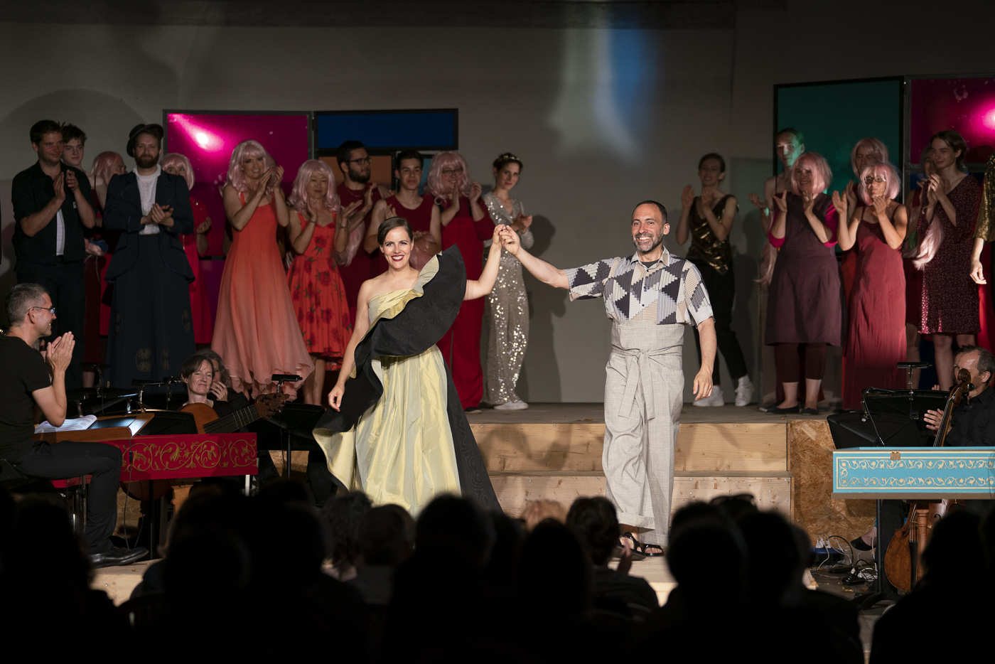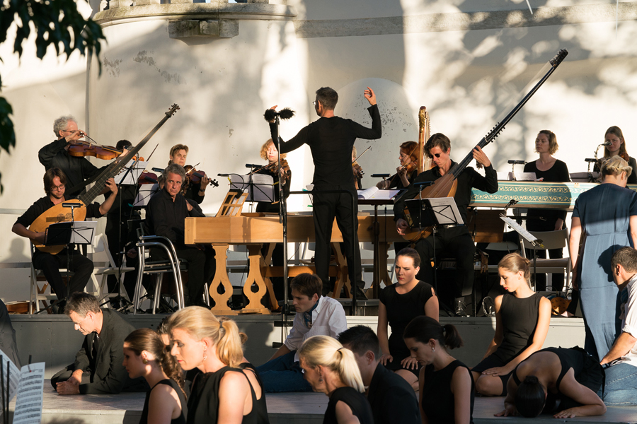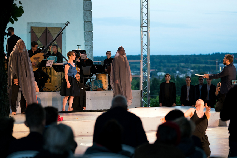 Zur Besetzung zählten mit Michael Feyfar als Orfeo, Gunta Smirnova als Euridice, La Musica sowie Jan Börner als Pastore und Speranza – drei Stimmen, die bereits in früheren Produktionen mitgewirkt haben. Silke Gäng als Messagiera und Proserpina, Lisandro Abadie als Caronte und Pluto, Raphael Höhn als Pastore, Spirito und Eco, Raitis Grigalis als Pastore, Spirito und Appollo sowie Salome Aeschlimann als Ninfa standen zum ersten Mal auf der Bühne von Schloss Waldegg. Sabina Aeschlimann und Hannah Jäkel gestalteten die Choreografie und die Tanzelemente und sorgten für überraschende Momente sorgen.