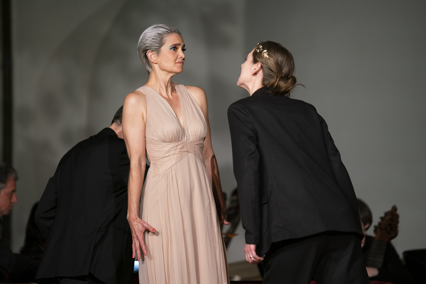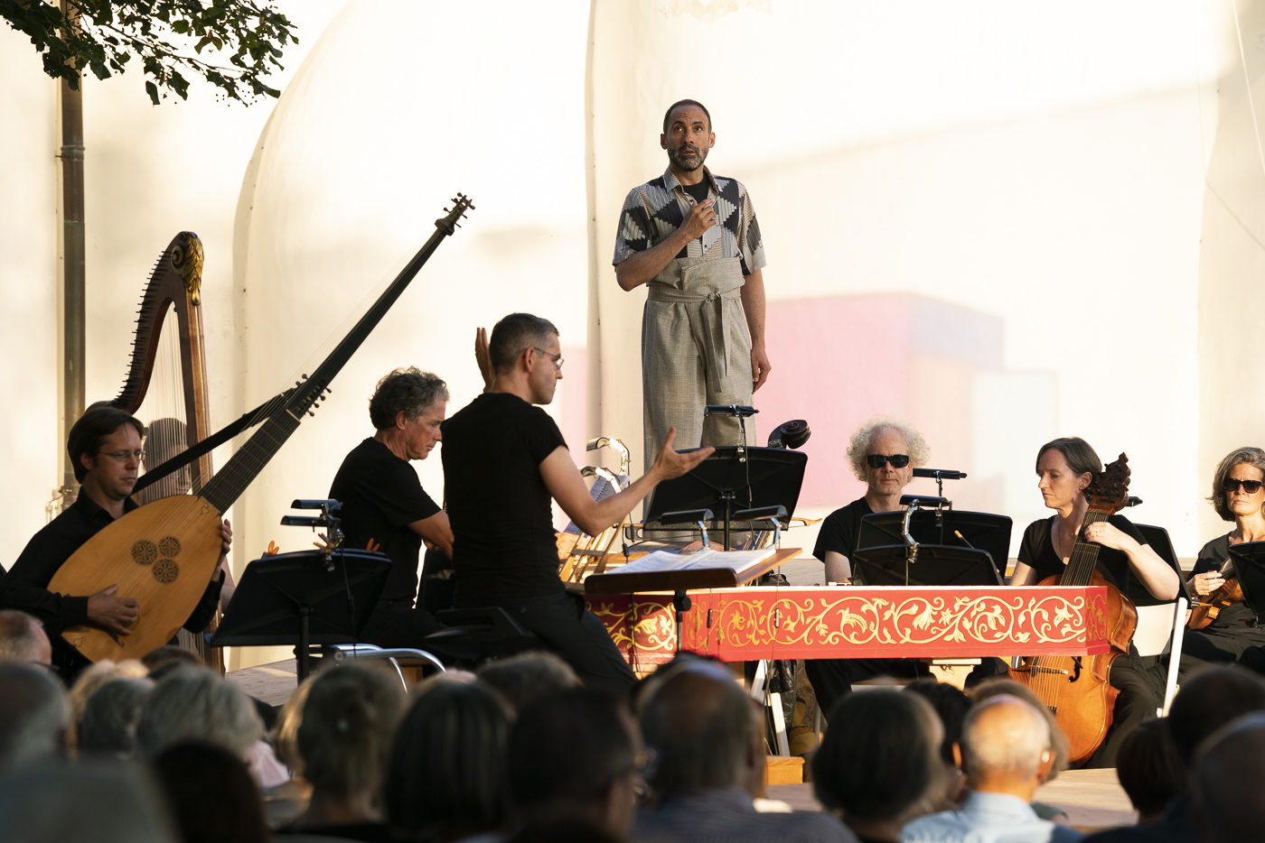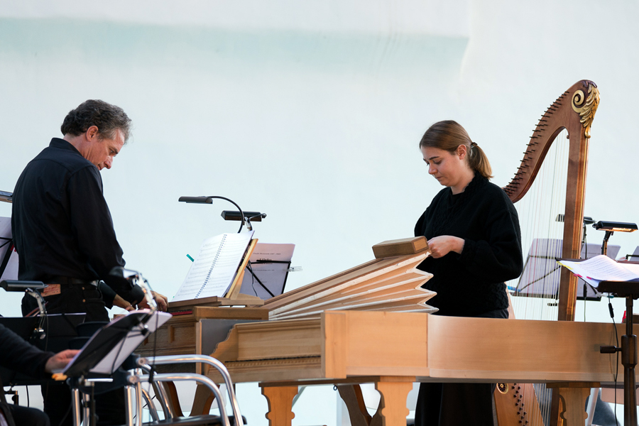 Für l‘Orfeo verwandelte sich das cantus firmus consort in ein Renaissance-Orchester: ein farbiges Continuo mit zwei Cembali, Regal, Orgel und zwei Lauten bildeten das Fundament. Dazu gesellen sich Zinken, Blockföten, Violinen, Violen, Gambe, Lirone, Cello und Violone. Die Stimmung der Unterwelt wurde von fünf Posaunen wiedergegeben.