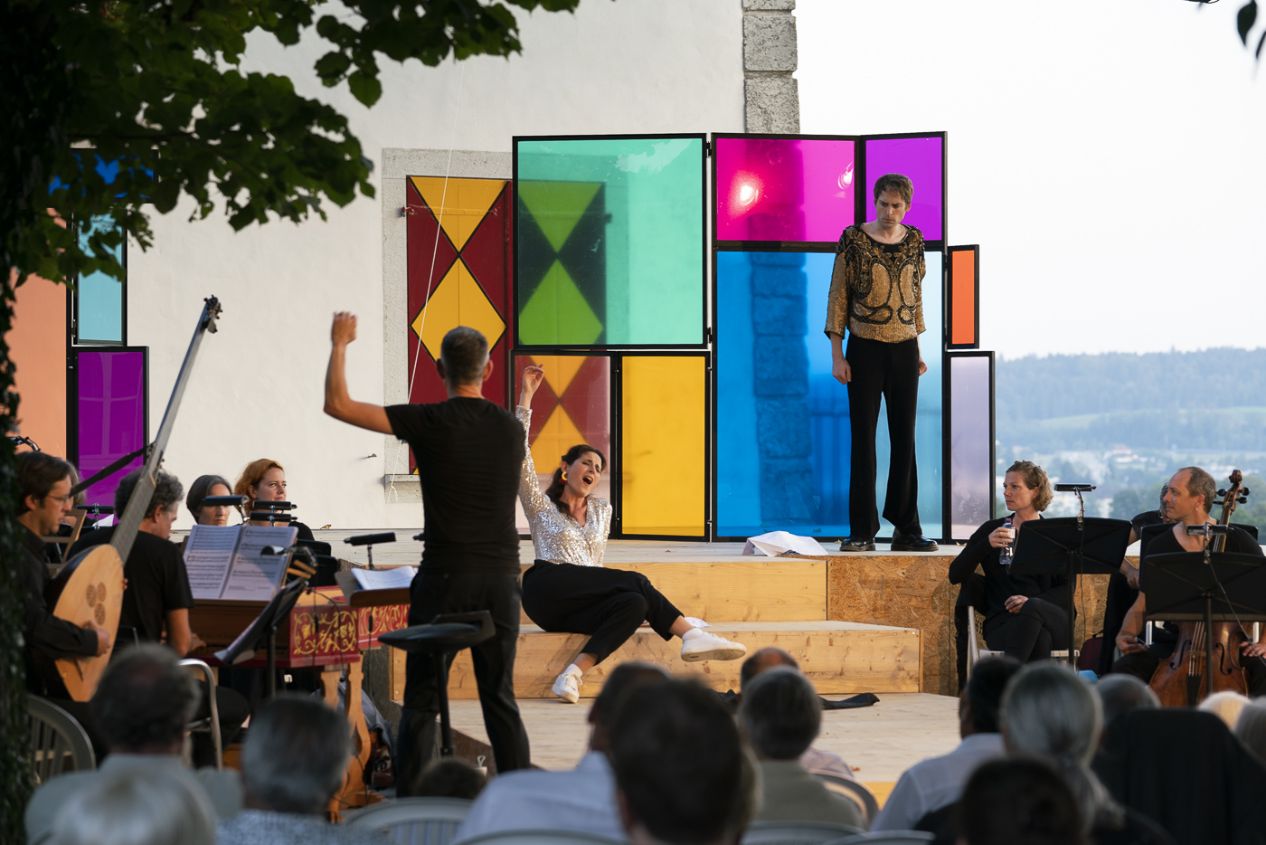 Im Sommer 2021 erklang mit «L'incoronazione di Poppea» der Höhepunkt der Monteverdi-Trilogie auf Schloss Waldegg. Andreas Reize dirigierte das cantus firmus consort auf historischen Instrumenten. Maria Ursprung führte erstmals Regie.