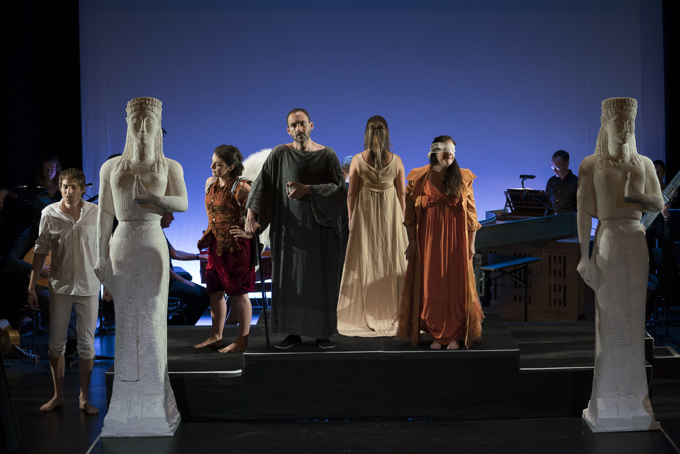 Das Aufgebot an Gesangssolistinnen und -solisten, alle erfahrene Barockspezialisten, war beachtlich. Neben Hans Jörg Mammel als Ulisse und Geneviève Tschumi als Penelope standen elf weitere Gesangssolistinnen und Gesangssolisten auf der Bühne. Georg Rootering setzte den Stoff viel Feingefühl für Monteverdis wunderbare Musik und einigem Humor in Szene.